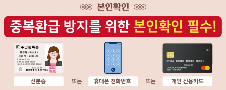 - 한 분이 여러 장 가져와 가족 이름으로 대리 수령 불가