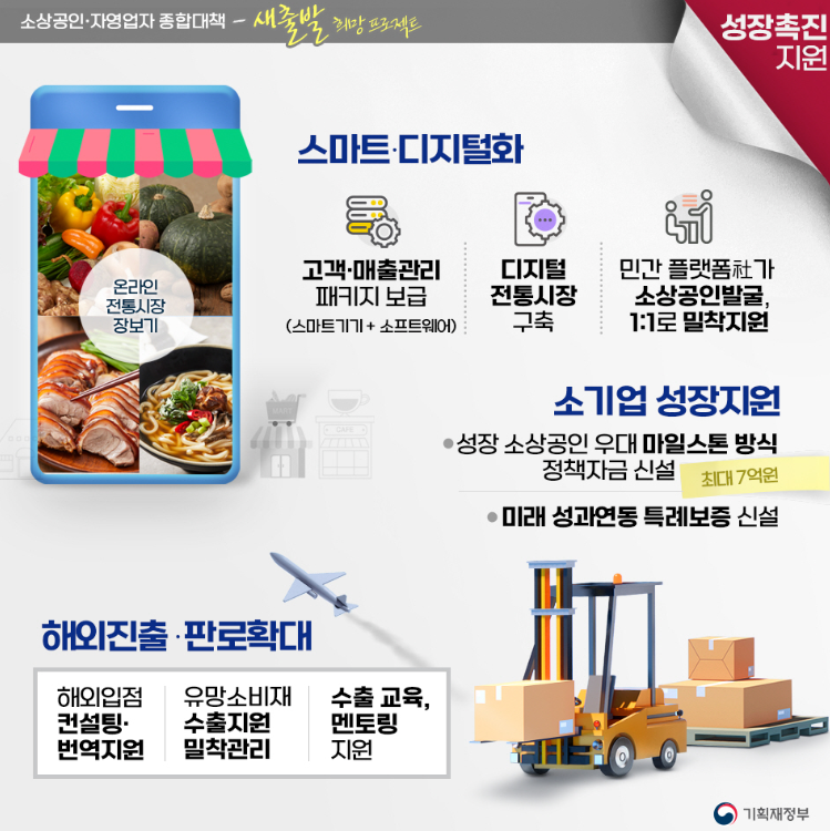 추진 방안: - 전통시장과 상점가의 디지털화 지원. - 고유 상품 개발 및 물류망 확산, 해외 플랫폼 입점 지원. - 추가 내용: 서울 동대문구 경동시장, 경기 부천시 중동사랑시장 등에서 디지털 전통시장 운영.