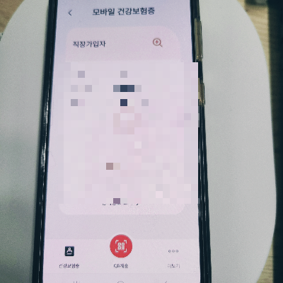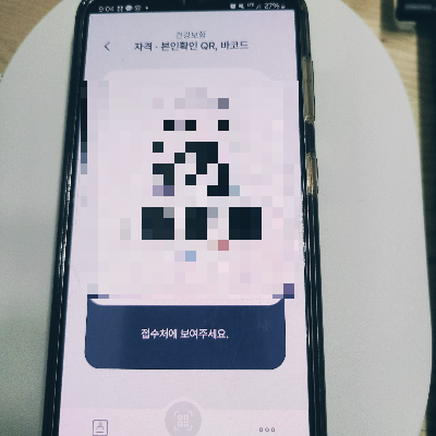 모바일 건강보험증 클릭 하셔서 보험증을 보여주셔더 되고 아래 동그란 아이콘 QR제출 누르셔서 바코드 보여주셔도 됩니다.