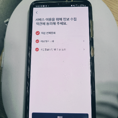 언어 한국어로 선택되어있으니 확인 누르시고 약관동의 누릅니다.