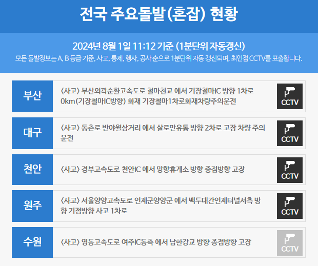 그래서 실시간으로 교통상황이 어떤지 궁금하실 때는 CCTV를 확인할 수 있는데요.