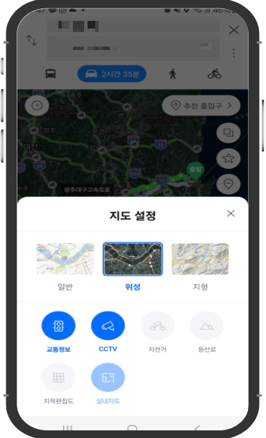 그리고 유의하실 점이 꼭 지도설정에서 'CCTV'를 설정하셔야 카메라 아이콘이 뜨고 실시간 화면을 보실 수 있습니다.