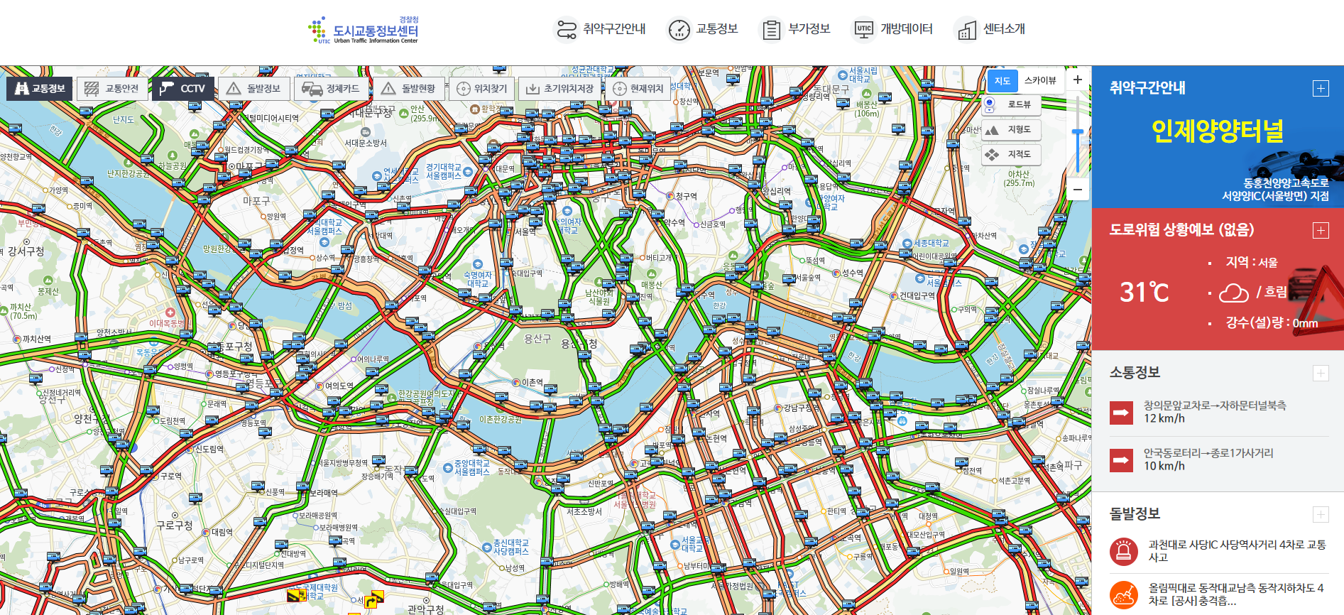 실시간 고속도로 교통정보는 도시교통정보센터 홈페이지에서 확인이 가능합니다.