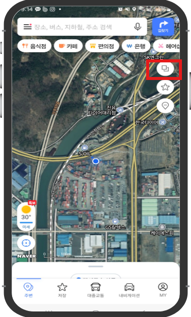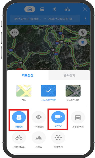 네이버 지도로 출발지와 도착지 사이의 교통체증과 실시간 교통상황 CCTV를 보는 방법은 다음과 같습니다.