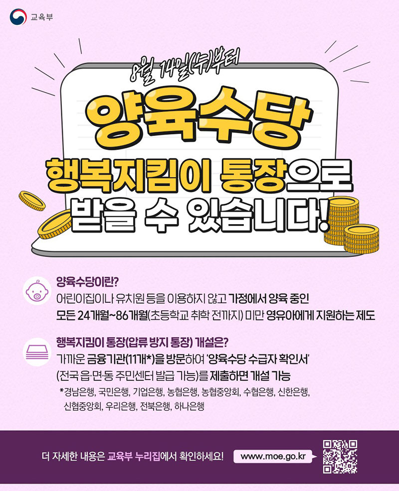 이번 조치로 양육수당이 실제로 필요한 가정이 온전히 전달 될 수 있을 것이라고 기대한다고 교육부는 밝혔습니다.