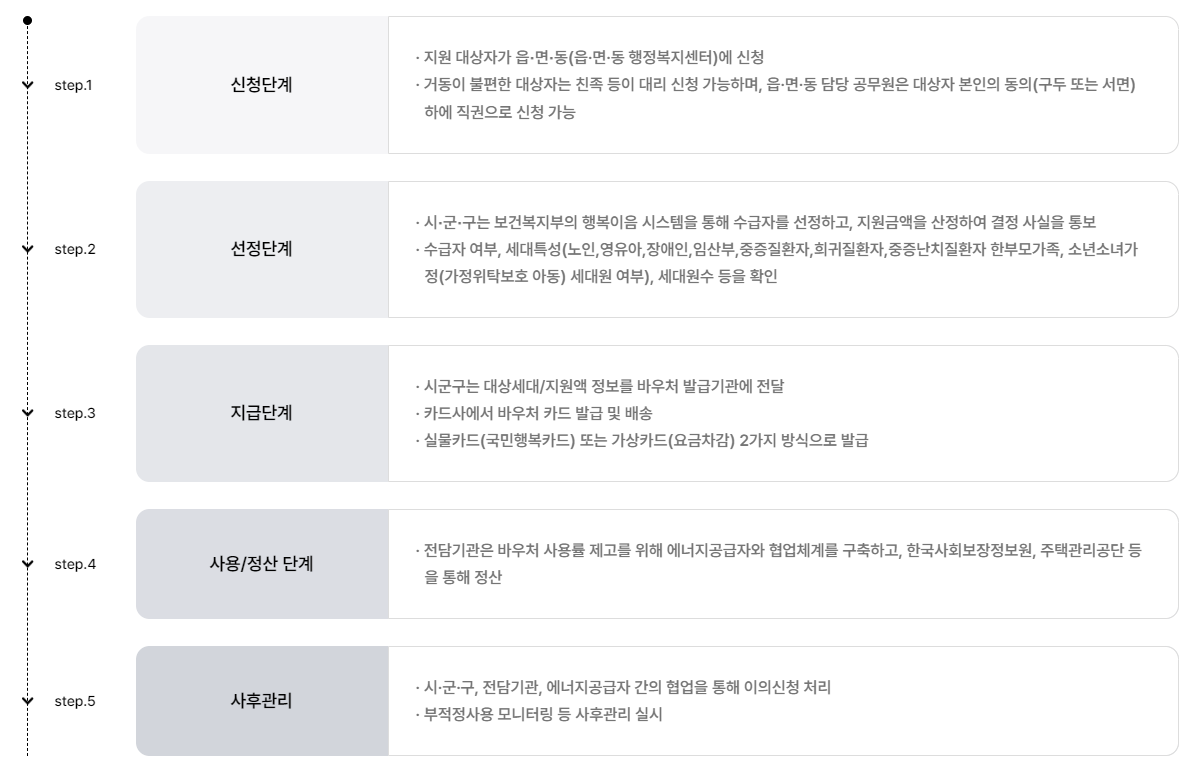 | 동절기 바우처 | 요금차감 | 2024년 10월 1일 ~ 2025년 5월 25일 | 전기, 도시가스, 지역난방 중 택 1 |