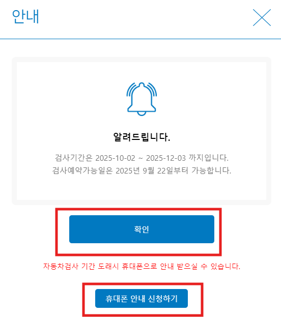▼ 아래 바로가기를 통해 자동차검사 알림 신청 가능합니다▼