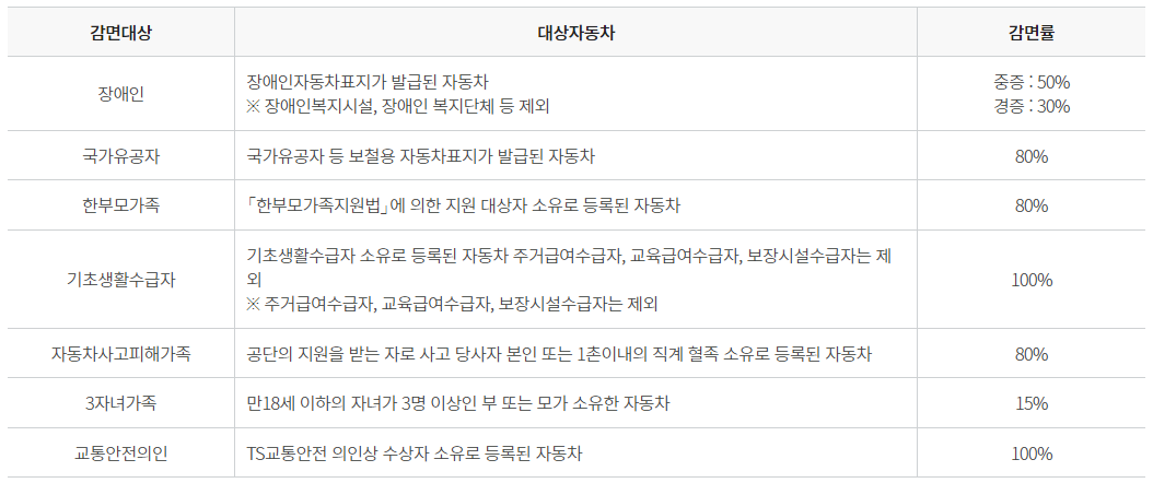 다만, 국가유공자 감면대상 자동차가 개인택시인 경우 감면 가능합니다.