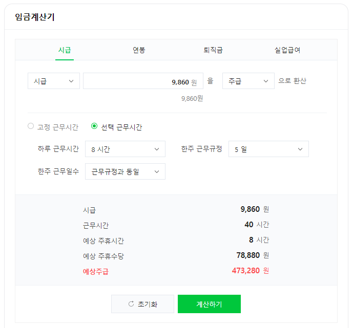 2024년 최저시급이 9,860원으로 하루 8시간씩 주 5일을 일을 했다면 예상 주휴수당은 78,880원이 됩니다.