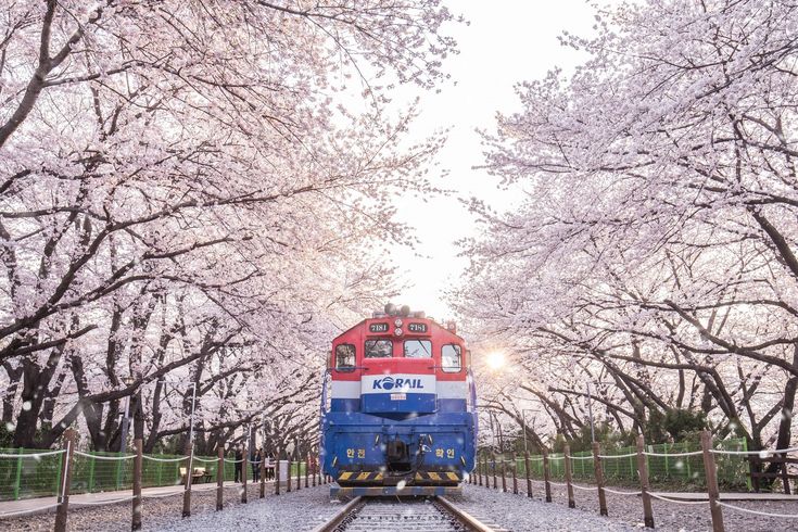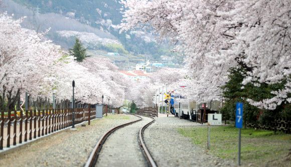 기차와 벚꽃이 어우러진 대표적인 사진 명소.