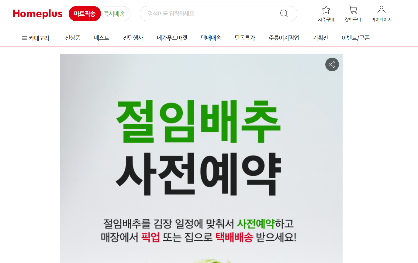 * 절임배추는 홈플러스의 협력사 "대복영농조합법인" 에서 안전하게 보내드립니다.