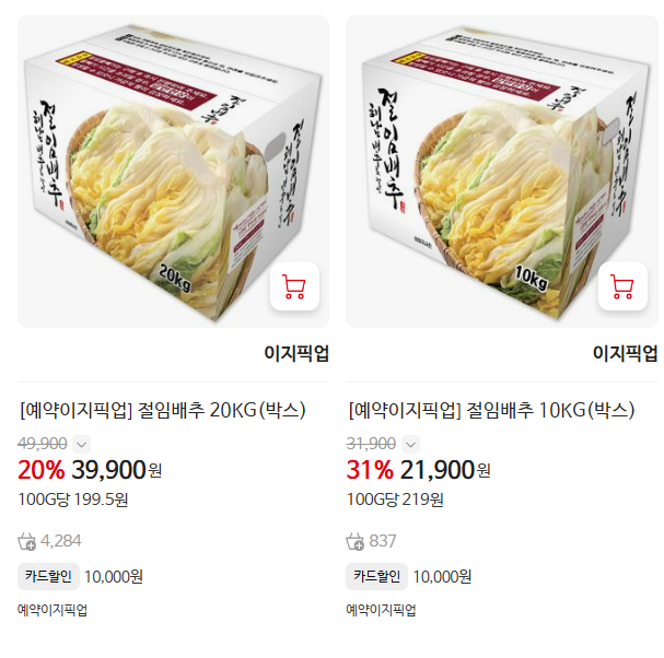 🔶예약 픽업 : 김장 일정에 맞춰 픽업일 선택