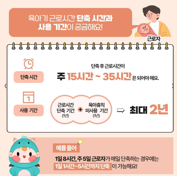 2024년 7월부터 개정된 내용으로 신청 가능하니 한분도 빠짐없이 신청하셔서 단축제도의 혜택을 받을 수 있기를 바랍니다. 더 나은 육아환경과 근로환경이 만들어지기를 바랍니다.