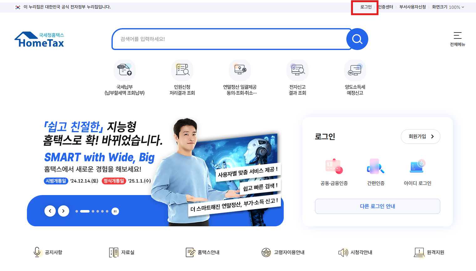 1. 홈택스 접속 및 로그인: 홈택스 웹사이트에 접속합니다. 공인인증서 또는 아이디와 비밀번호로 로그인합니다.