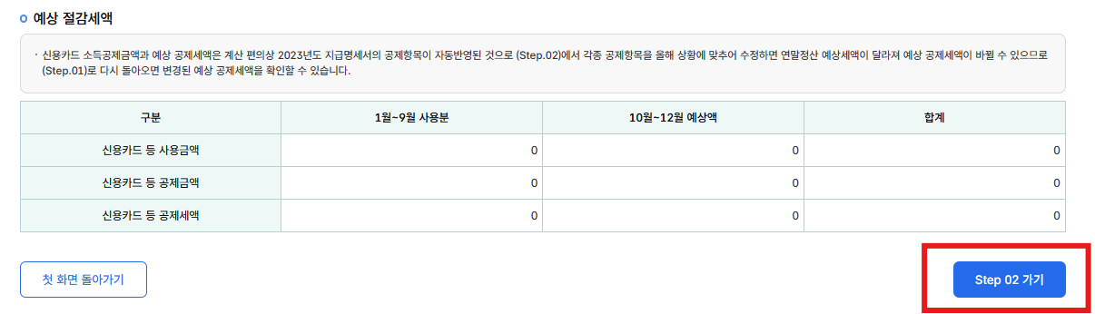 ✔ 또한, 예상 절감세액이 있는지 확인하시고 'Step 02'를 클릭합니다.