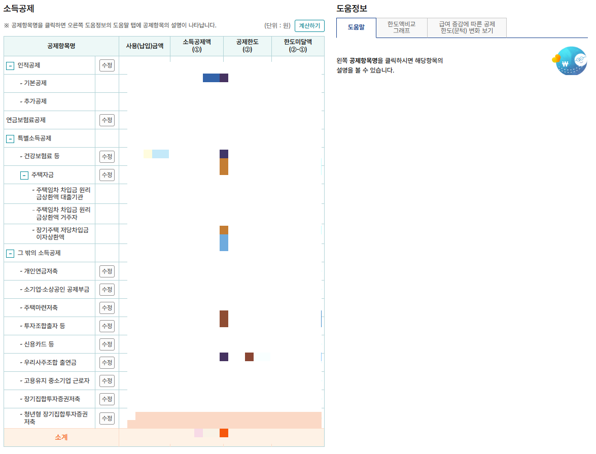 소득공제나 세액감면 란에 추가로 수정할 부분이 있다면 수정하시면 예상 금액을 확인할 수 있습니다.