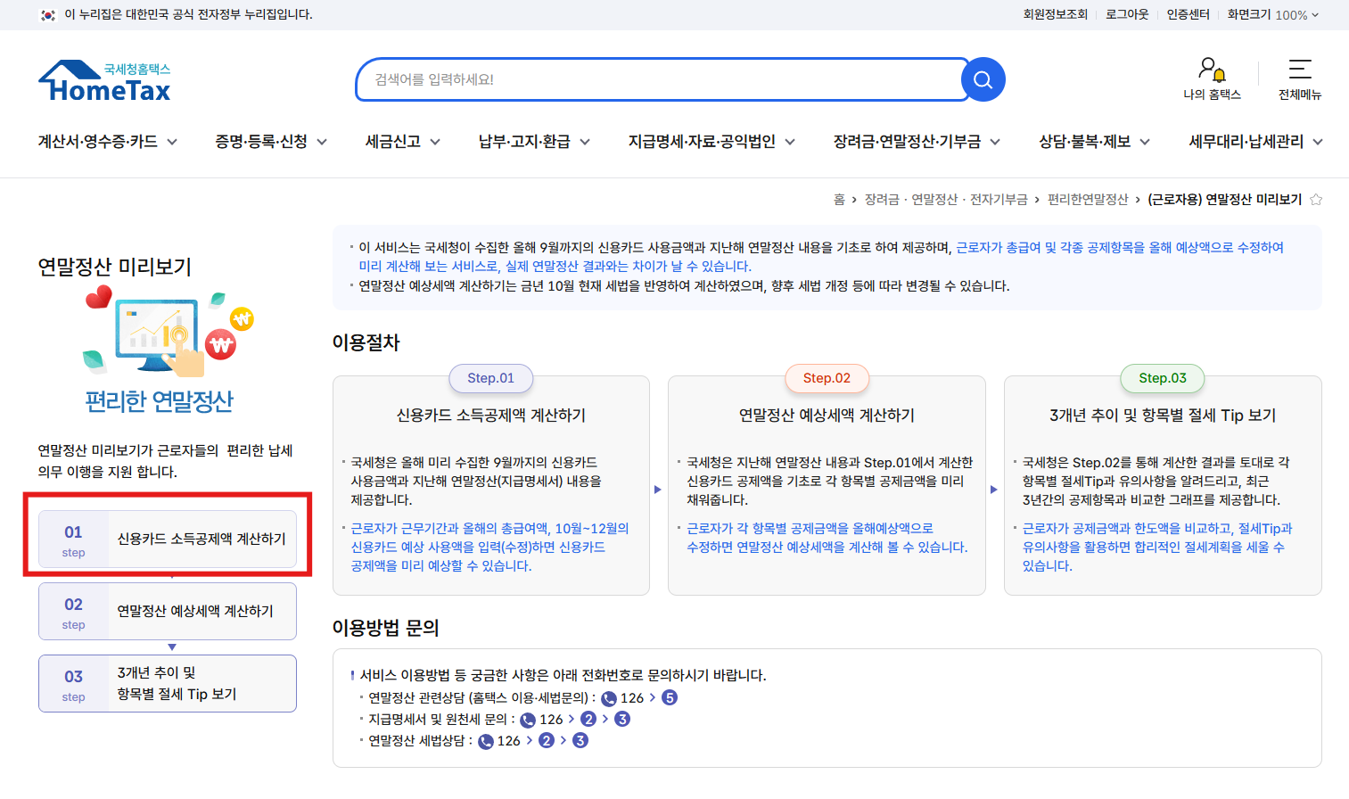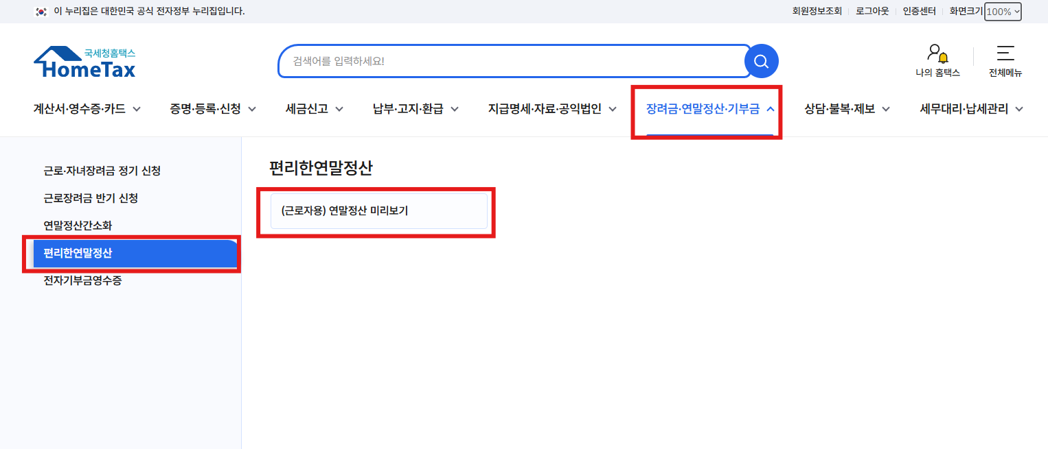 홈택스 홈페이지에서 11월 15일에 연말정산 미리 보기 서비스가 열렸습니다.