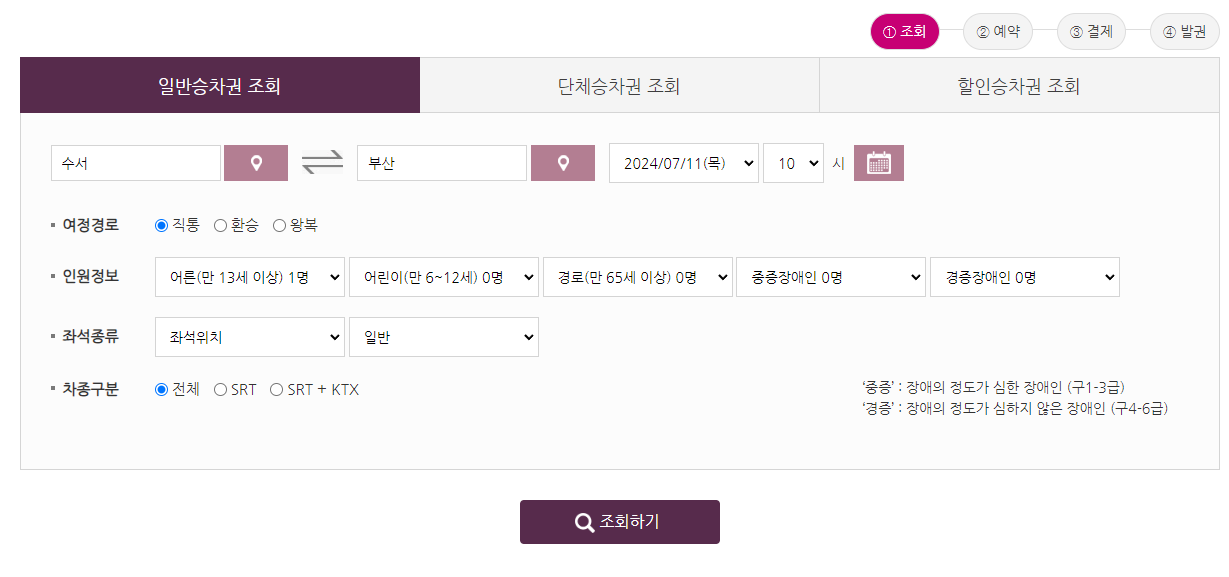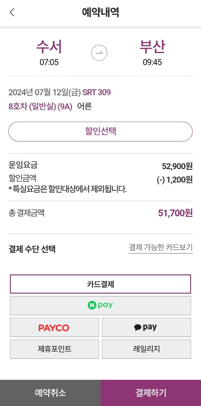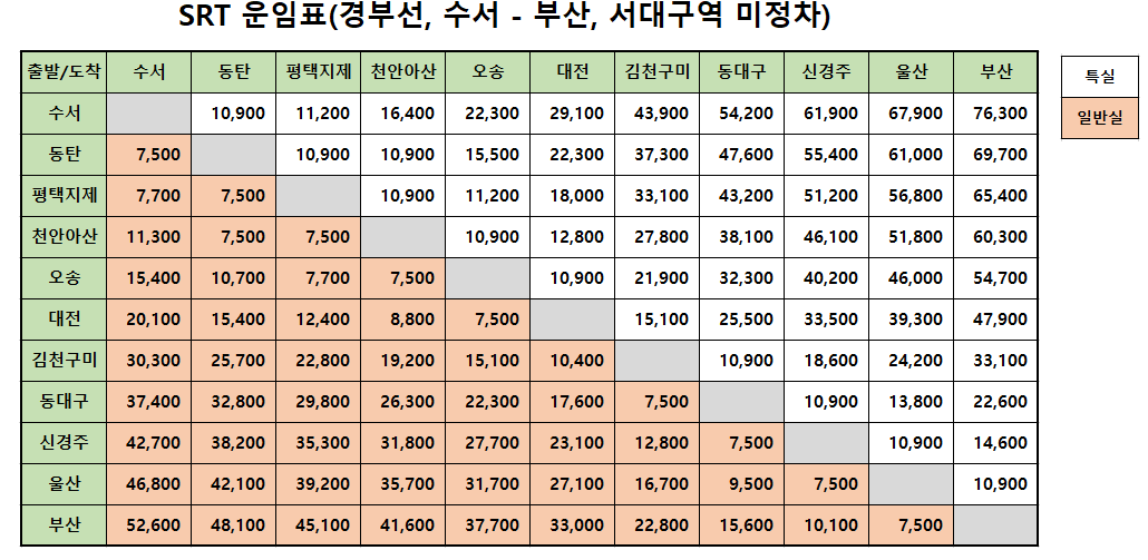 정차역할인 (정차역 당 운임 0.2% 할인) : 운행구간 도중 정차하는 역 수에 따라 할인제공